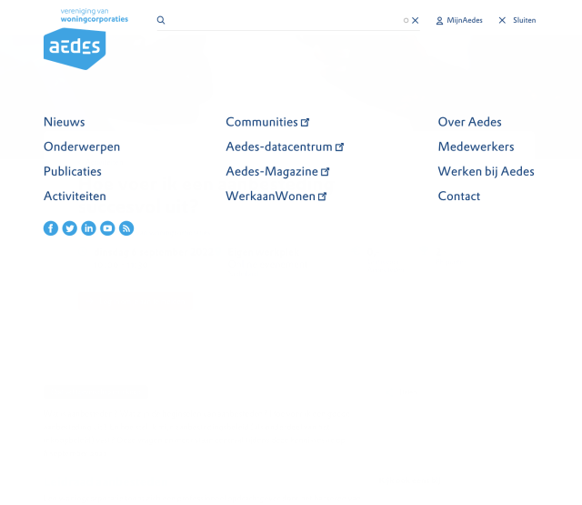 Online voert Aedes deze taken uit via Aedes.nl, het platform 'Mijn Aedes' en het bijbehorende onderdeel Communities. Aedes.nl is de plek waar leden en andere betrokkenen de voor hen relevante informatie kunnen vinden. Een plek waar leden een overzicht vinden van specifieke kennis geordend in thema's en onderwerpen, waaronder het tekort aan betaalbare woningen, en het stikstofdebat. In Mijn Aedes beheren leden en stakeholders hun verbinding met Aedes, schrijven zij zich in voor evenementen en workshops en geven zij aan over welke onderwerpen zij op de hoogte gehouden willen worden. De leden en stakeholders kunnen in het Communities platform via verschillende onderwerpen kennis en expertise met elkaar (en Aedes) uitwisselen. Dit is bedoeld voor onderlinge discussie, samenwerking en het delen van meningen en kennis. Het gehele Aedes platform is gebouwd in Drupal. De publieke websites Aedes.nl, het Mijn Aedes gedeelte, maar ook de zeer interactieve Communities. Drupal draait binnen een ecosysteem van meerdere applicaties, waarbij single sign-on via Microsoft Active Directory en de koppeling met het onderliggende CRM centraal staan. Drupal haalt de belangrijke informatie uit de bronsystemen, zoals het CRM, en geeft deze op een toegankelijke manier weer voor de leden en stakeholders, waarbij relevantie en context, co-creatie, zelfsturing en eigenaarschap gewaarborgd zijn.